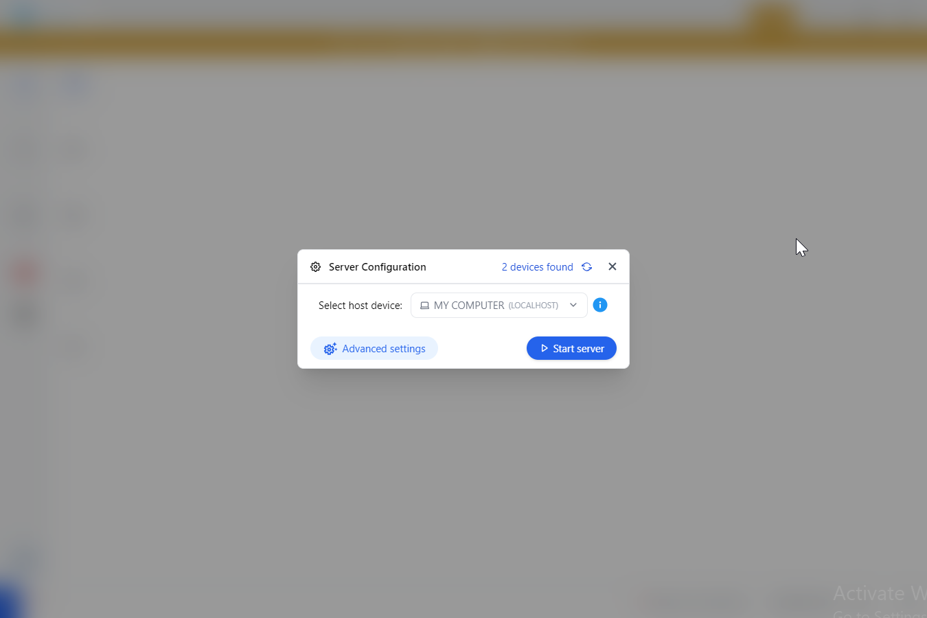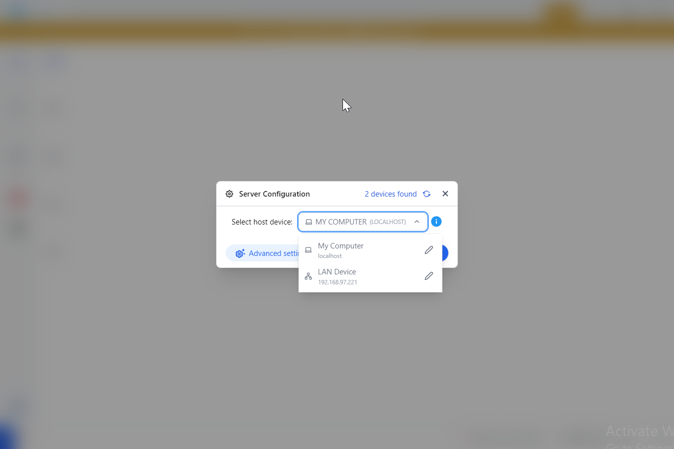 You will see a dialog with a dropdown menu containing the list of devices that can serve as your exam server.